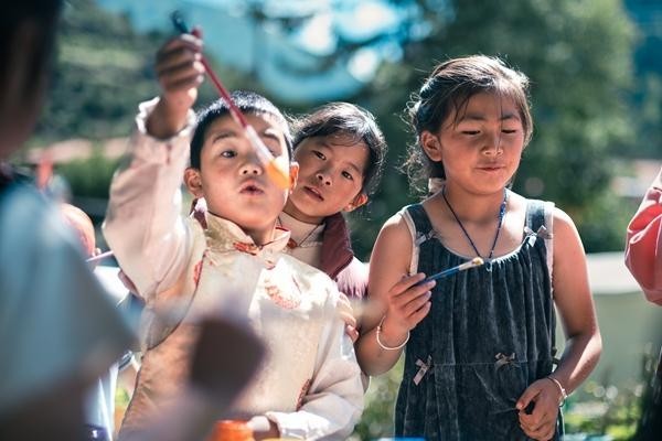 2025年7月,天津大学“拥抱纳咪(HUGNAMI)”支教团在四川省阿坝藏族羌族自治州松潘县大姓乡组织支教活动。图为支教团成员王译旋带领孩子们用丙烯颜料在石头上创作。大家分工画海浪、贝壳和阳光,最后拼成一幅完整的作品。天津大学“拥抱纳咪(HUGNAMI)”支教团供图 蒋邓民/摄